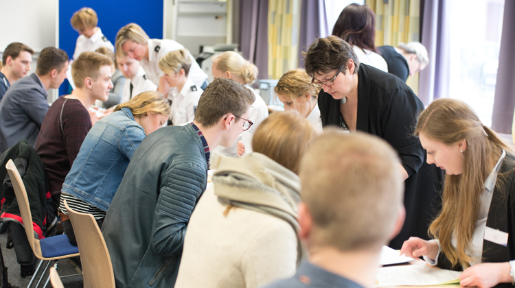 Vor der Ernennung in das Beamtenverhältnis auf Widerruf nahmen zunächst alle Bewerber am Vormittag mit dem Durchlaufen der abschließenden Einstellungsuntersuchung die letzte Hürde des Auswahlverfahrens. Der Förderverein, vertreten durch Mike-Olliver Freyer, unsere ALUMNI-Beauftragte Christiane Wichmann und die JAV standen währenddessen für die „Neuen“ mit Rat und Tat zur Seite.