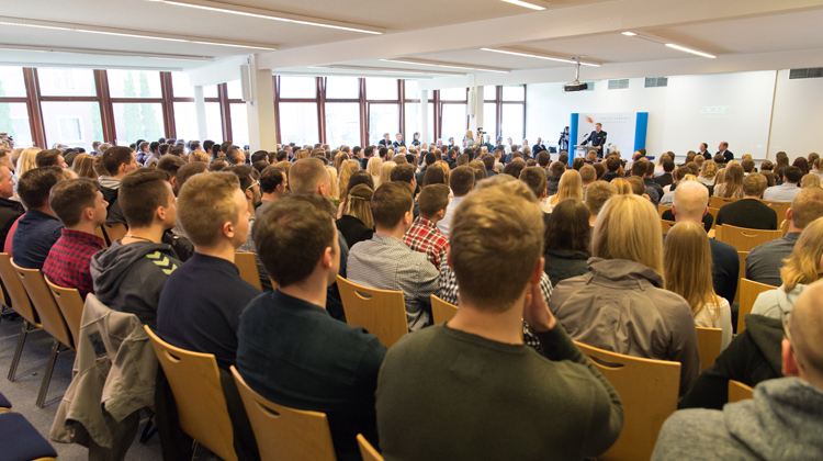 Akademiedirektor Dieter Buskohl beglückwünschte am Nachmittag im Plenum die Bewerberinnen und Bewerber zum erfolgreichen Absolvieren des Auswahlverfahrens und zur Berufsentscheidung. Gleichzeitig betonte er, dass das Studium viel abverlangen werde und sie ab sofort auch im Lichte der Öffentlichkeit stehen.