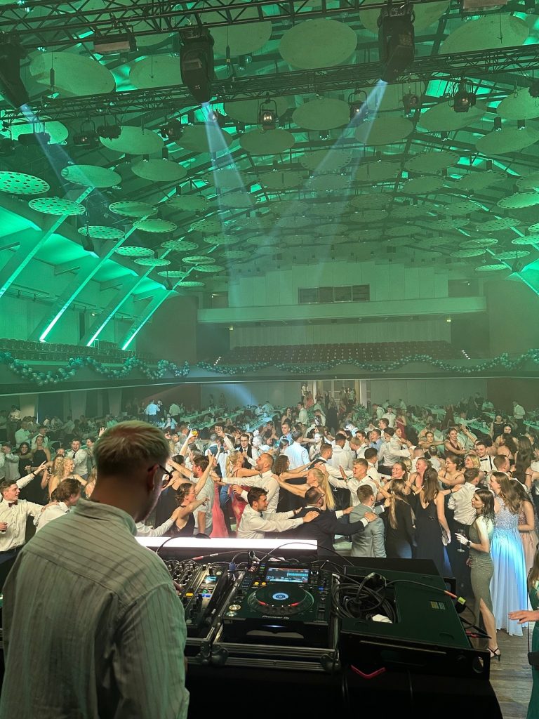 Ab 21:00 Uhr öffneten sich die Türen für Gäste mit Getränketickets und die Stimmung wurde noch ausgelassener. Unser DJ JULS WECK sorgte bis tief in die Nacht mit guter Musik für die perfekte Stimmung – von Party-Klassikern bis hin zu aktuellen Hits war alles dabei. Die Tanzfläche füllte sich schnell und die gemeinsame Feier ließ die Kongresshalle in eine Atmosphäre voller Freude,